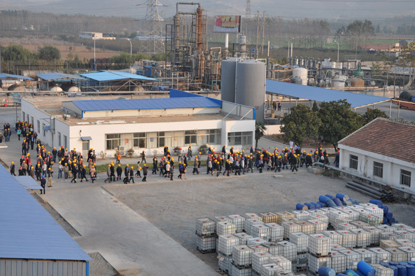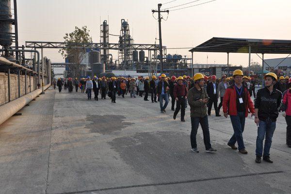 2013年第33屆水處理年會(huì),在山東棗莊開元鳳鳴山莊召開,會(huì)議第一天,全國300多名水處理專家和同行,參觀山東泰和科技股份有限公司,并在泰和的倉儲立體庫門前完成了本次年會(huì)的大合照。所有代表參觀了泰和工廠,泰和經(jīng)過這么多年的飛速發(fā)展,現(xiàn)在過萬噸成套設(shè)備有年產(chǎn)2萬噸60%HEDP及聯(lián)產(chǎn)1.5萬噸乙酰氯裝置1套,年產(chǎn)2.5萬噸ATMP生產(chǎn)裝置1套,年產(chǎn)1萬噸1227裝置2套。